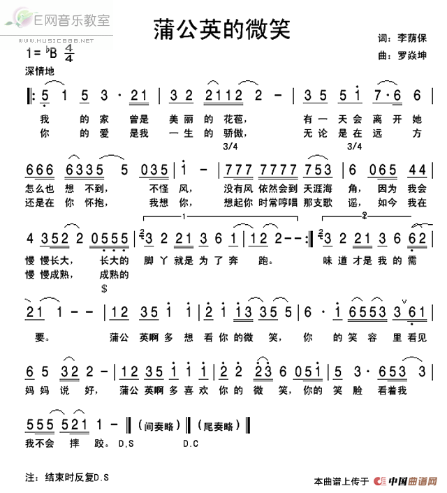 - [歌谱] 蒲公英的微笑