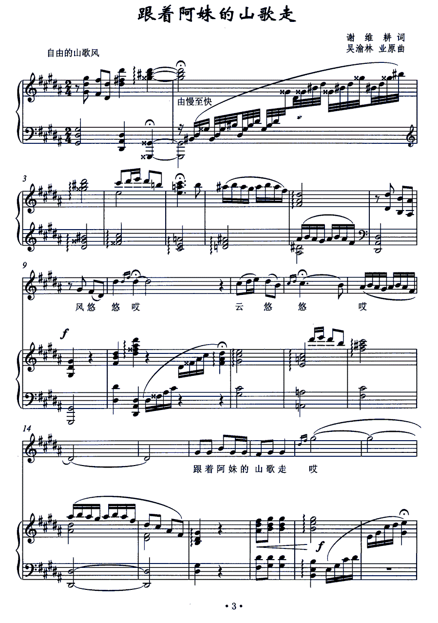 - [歌谱] 跟着阿妹的山歌走 吴渝林 业原曲