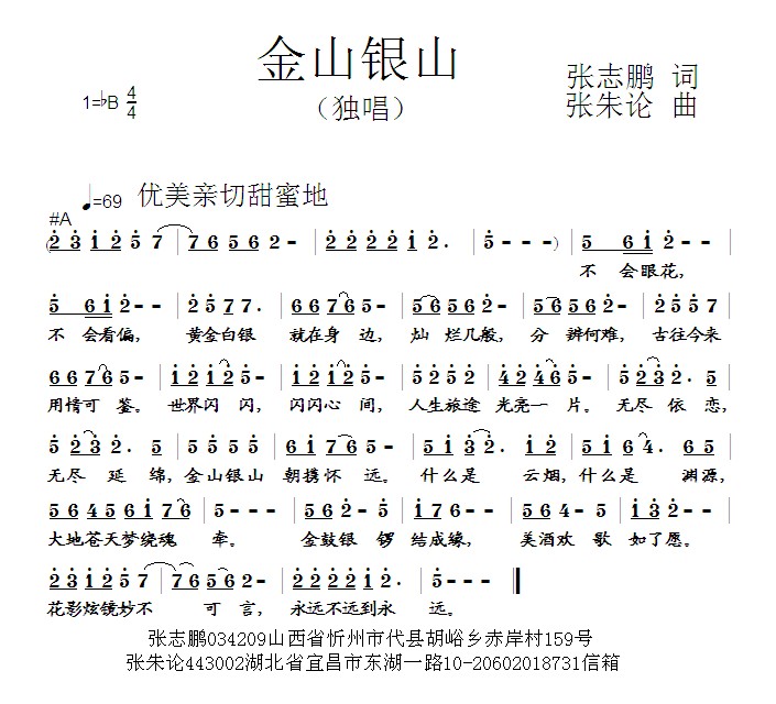 - [歌谱] 金山银山