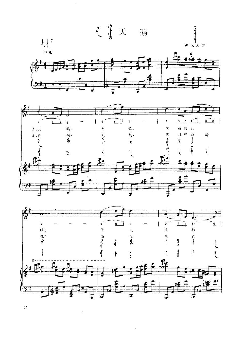 - [歌谱] 天鹅 汉语蒙语