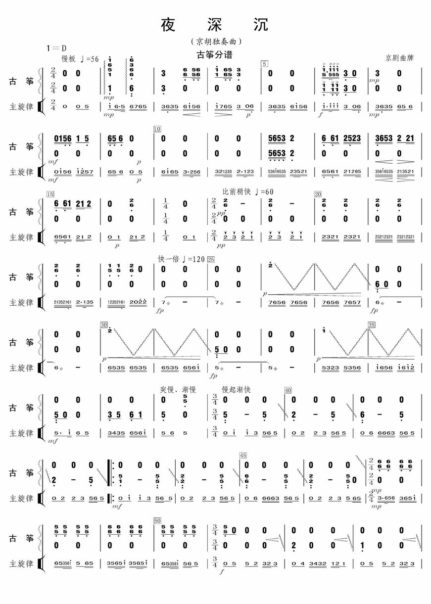- [分谱,古筝谱,总谱] 夜深沉 古筝
