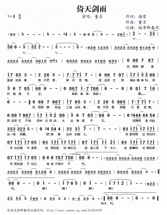 - [笛子谱,歌谱] 剑起苍澜 董贞