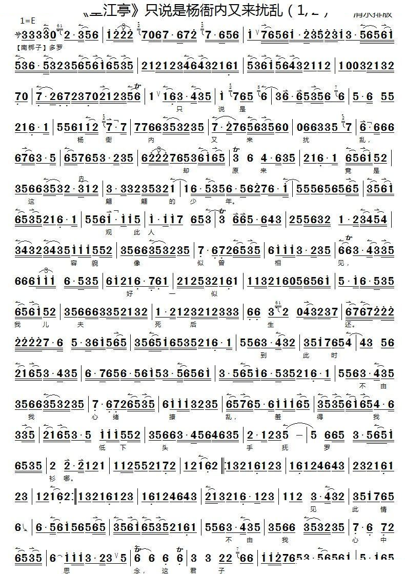 只说是杨衙内又来扰乱 望江亭 选段 京胡伴奏谱 京剧唱谱