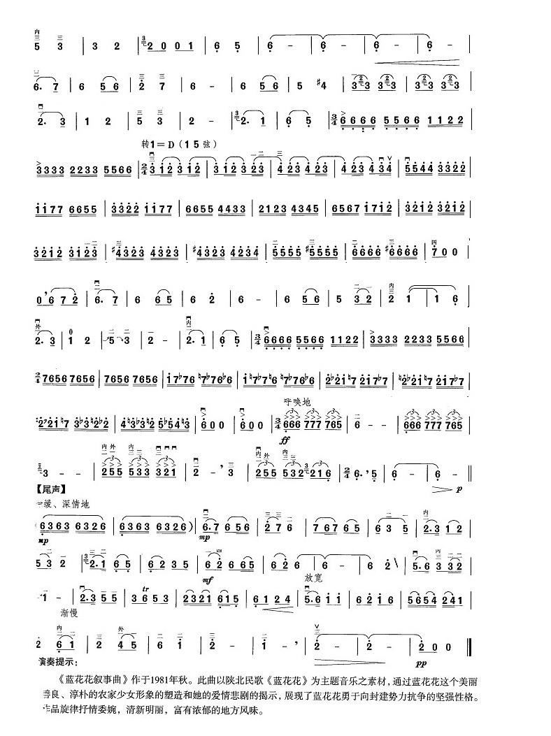 二胡 兰花花叙事曲 扬琴伴奏谱