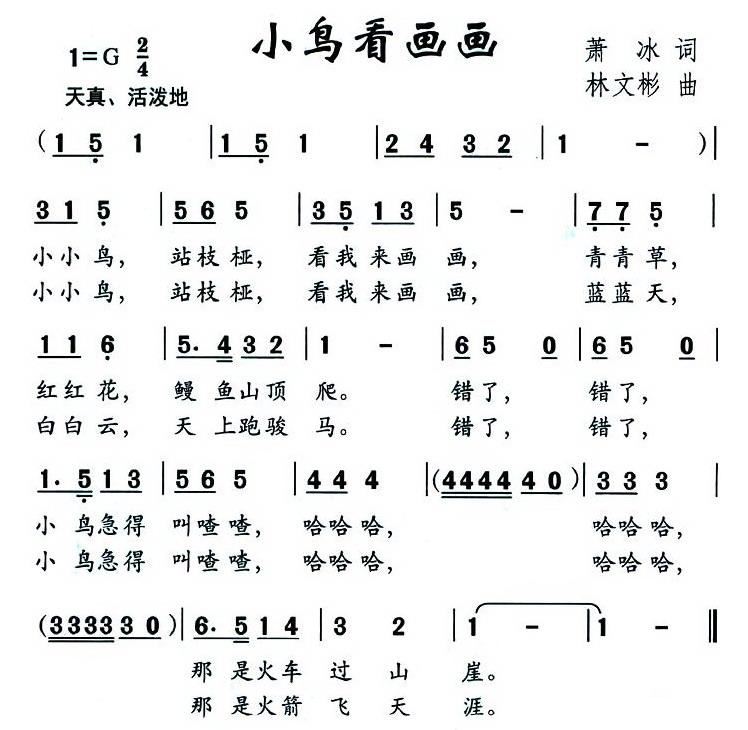 - [歌谱] 小鸟小鸟