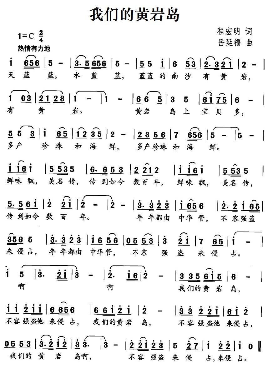 - [歌谱] 我们是黄岩祖国 我们是黄岩母亲