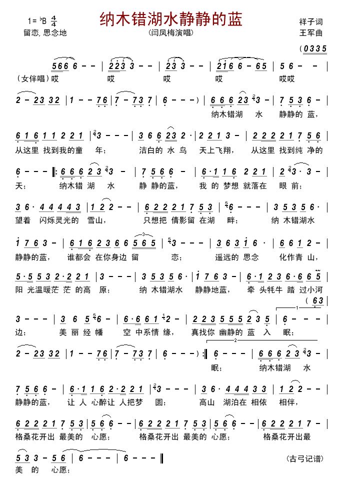 - [歌谱] 纳木错湖水静静地蓝