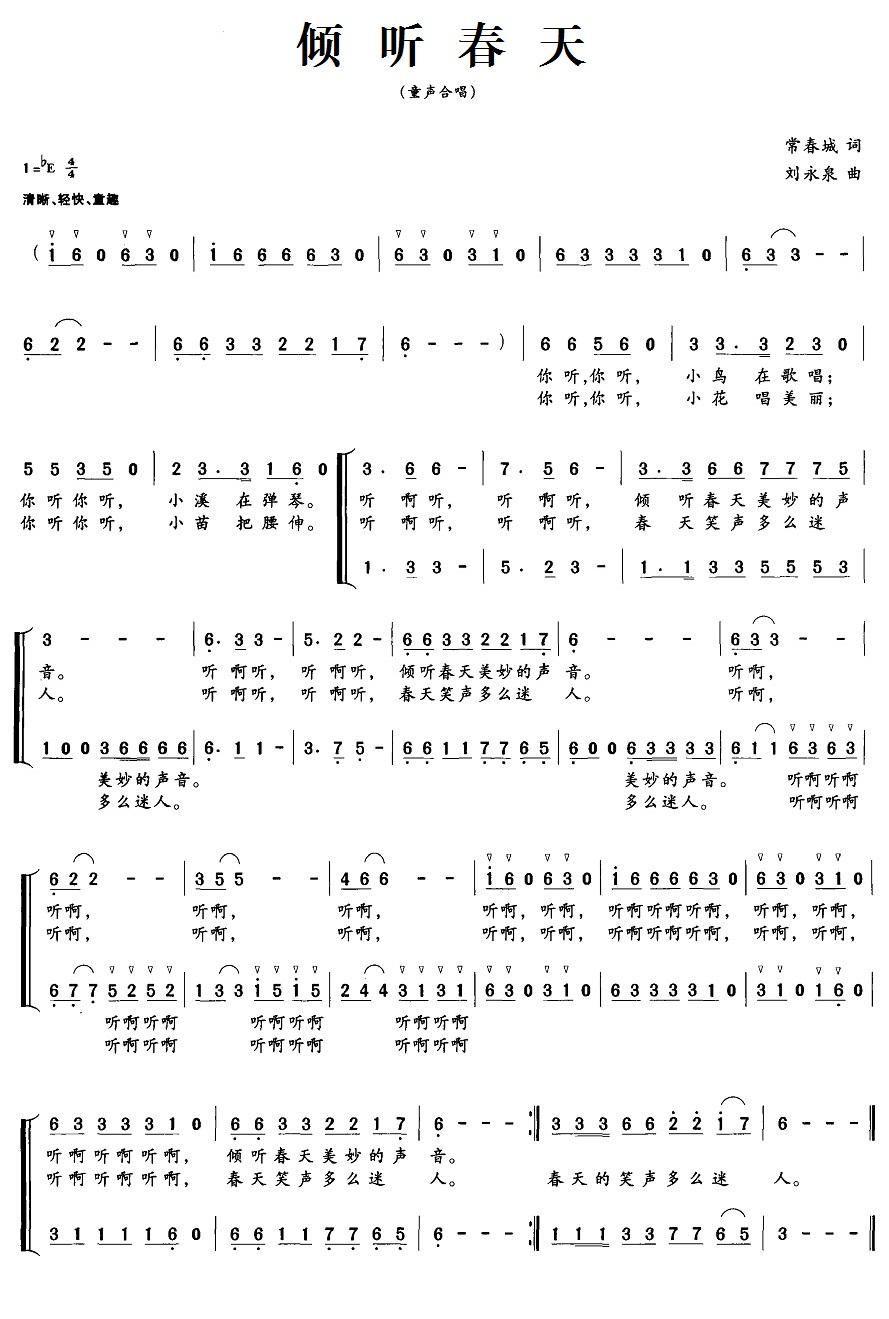 - [歌谱] 倾听春天 童声合唱