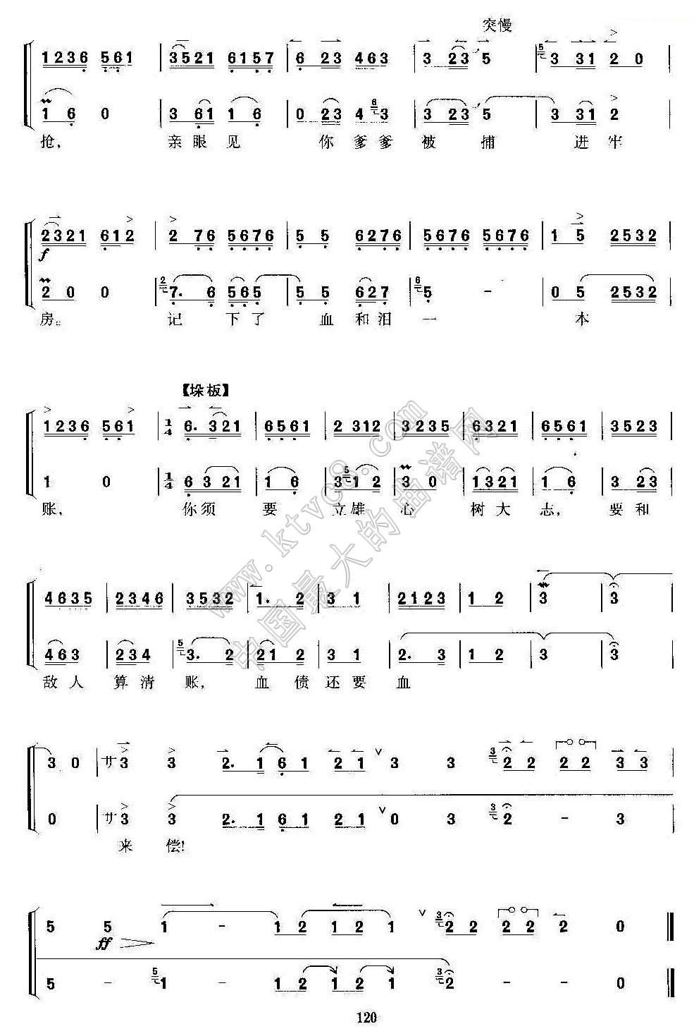 血债还要血来偿 李奶奶唱腔 京剧琴谱