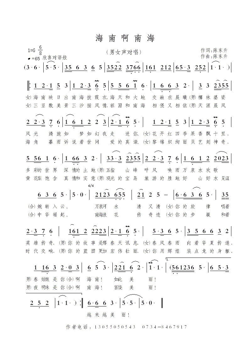 - [歌谱] 南海之恋