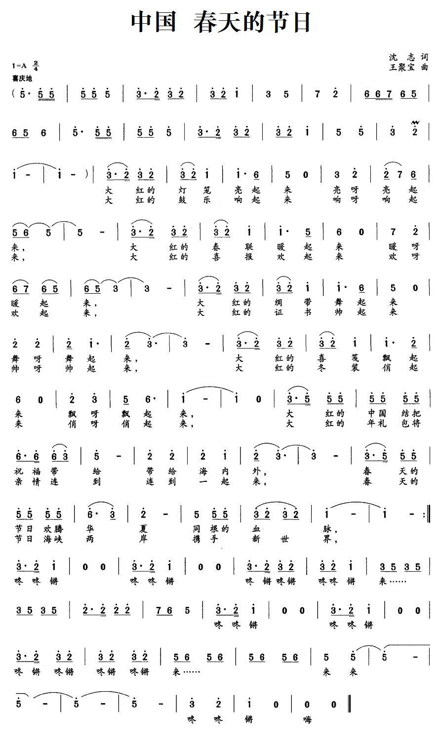 - [歌谱] 中国的春天