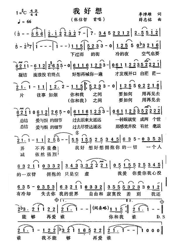 - [歌谱] 我好想你