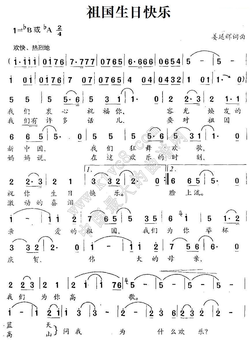 - [歌谱] 祖国生日快乐