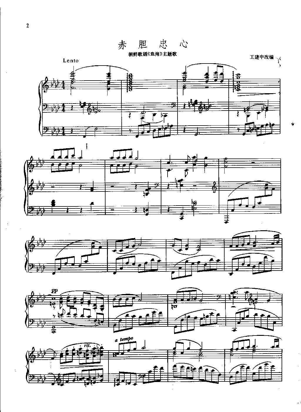 > 赤胆忠心朝鲜歌剧 血海 主题歌 钢琴独奏曲