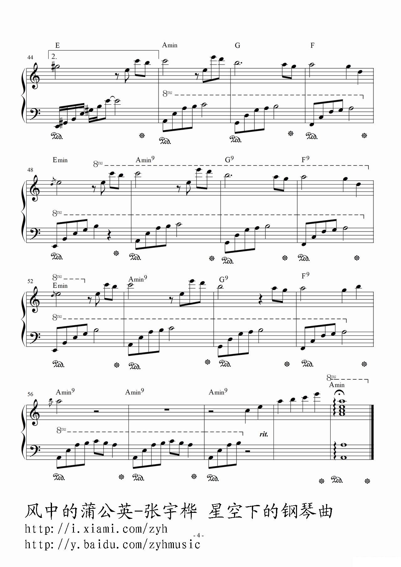 - [钢琴谱] 风中的蒲公英