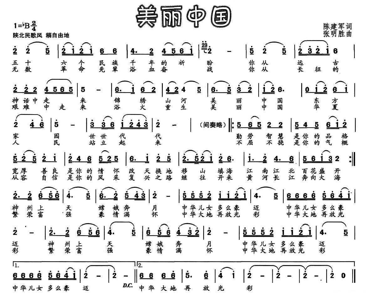 - [歌谱] 美丽中国