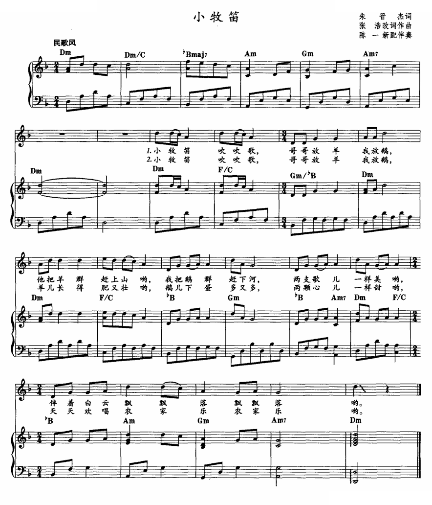- [笛子谱,钢琴谱] 小牧笛 钢琴伴奏