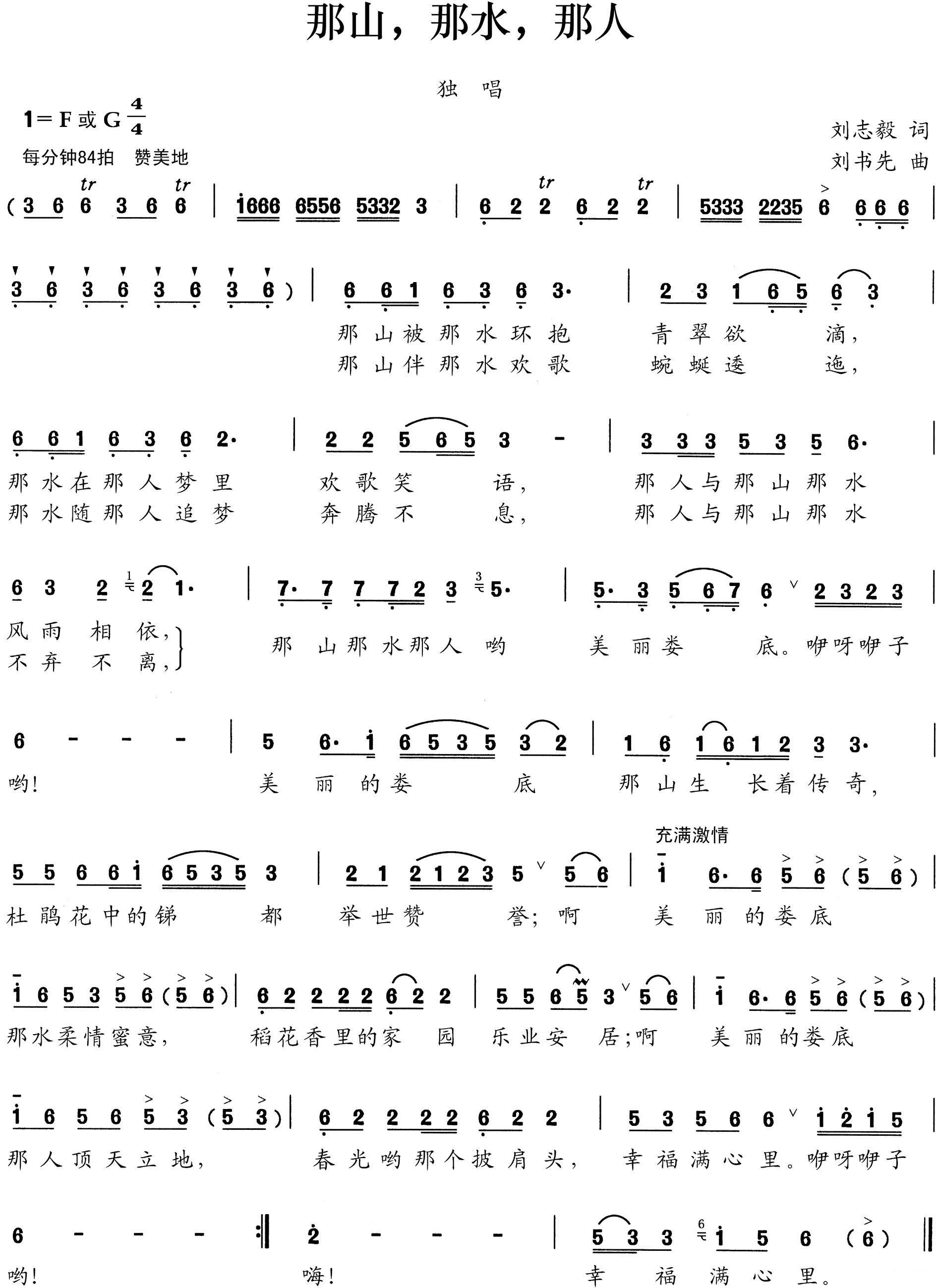 - [歌谱] 那山那水那人