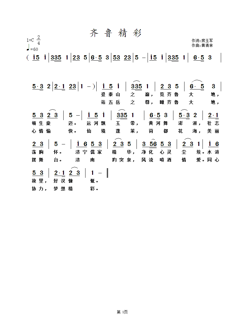 - [歌谱] 新齐鲁 心激荡