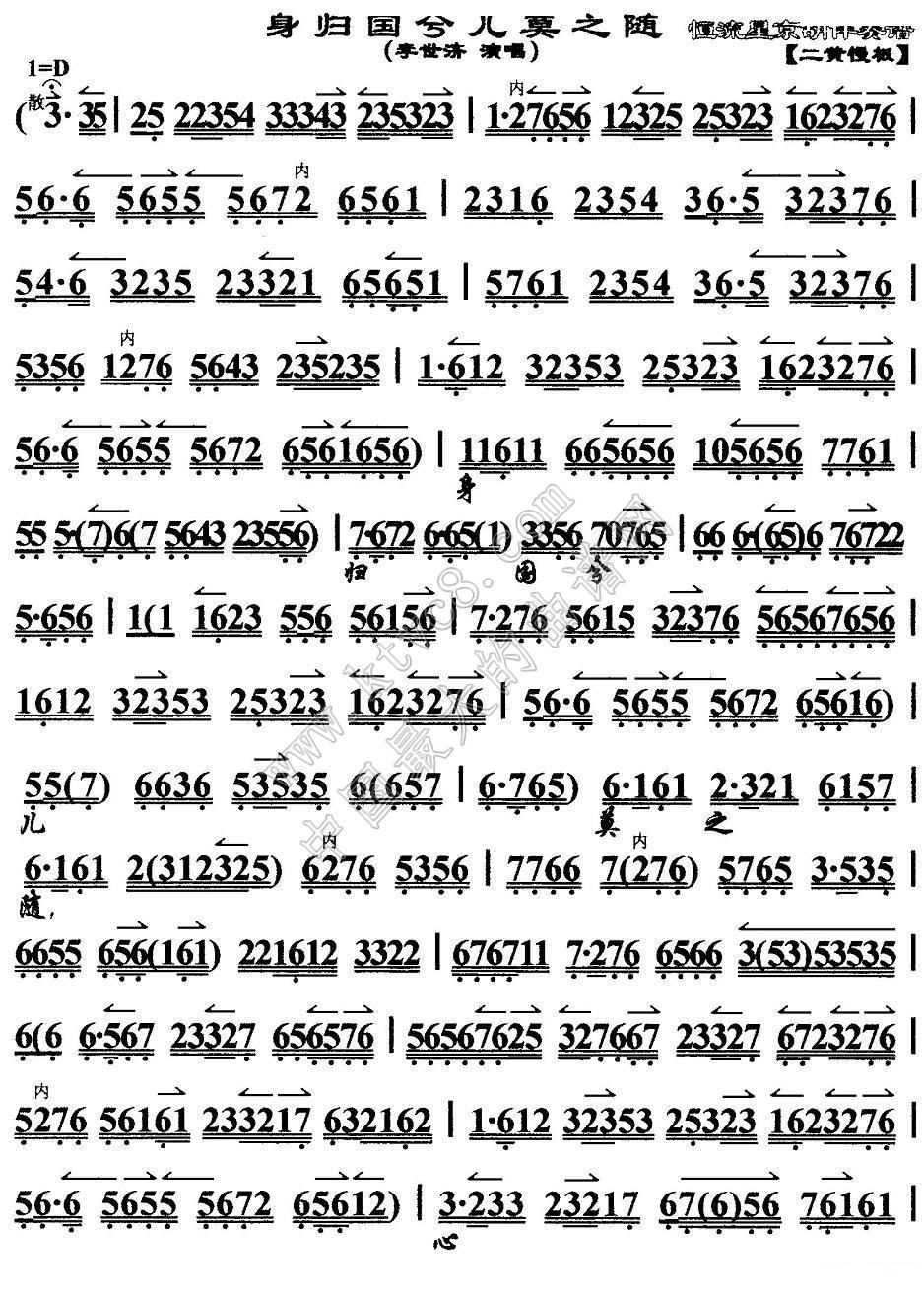 > 身归国兮儿莫之随 文姬归汉 选段 京胡伴奏谱