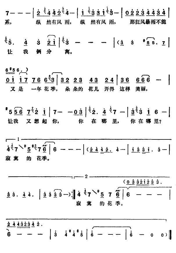 - [歌谱] 寂寞的花季
