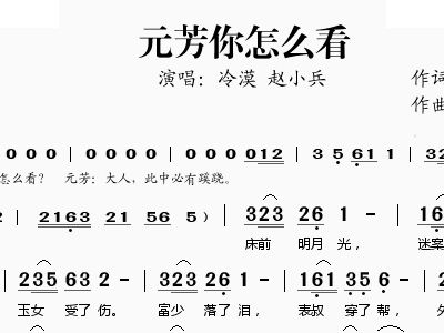 - [歌谱] 元芳你怎么看 冷漠 赵小兵