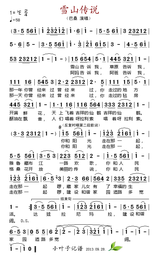 - [歌谱] 雪山传说