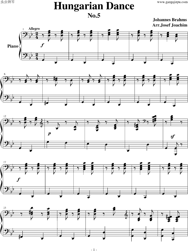 匈牙利舞曲第五号 四手联弹 勃拉姆斯