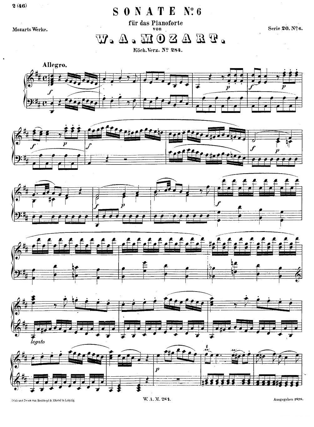 莫扎特D大调钢琴奏鸣曲K 284 莫扎特