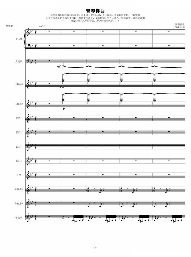 > 青春舞曲 学校常用的器乐合奏版