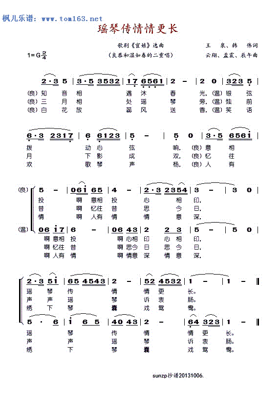 > 瑶琴传情情更长 选自歌剧 宦娘 良恭和温如春的二重唱