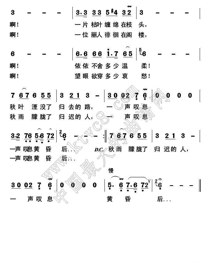 - [歌谱] 一声叹息黄昏后