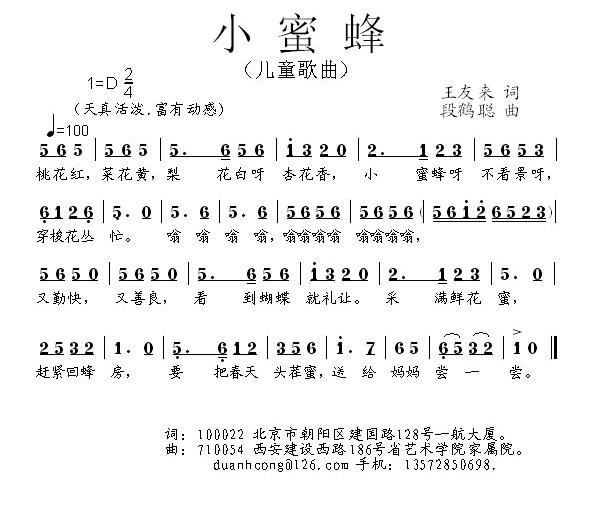 - [歌谱] 小蜜蜂 德