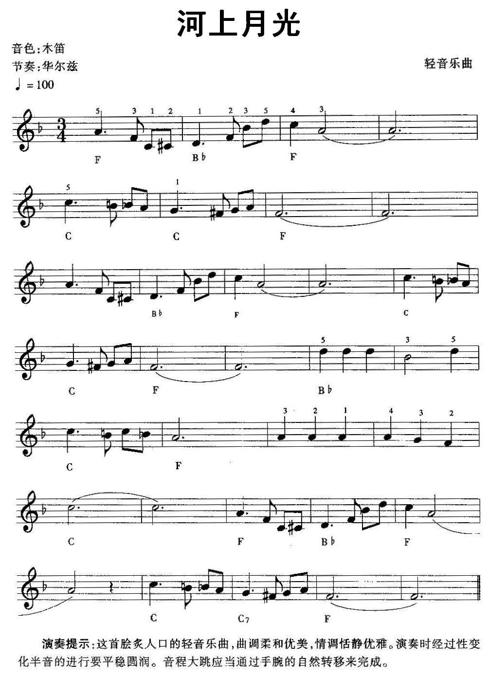 慢三步舞曲 科罗拉多河上的月光 旋律 和弦标记