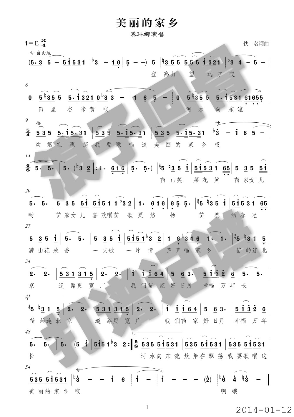 - [笛子谱,萨克斯谱,长笛谱] 长笛 美丽的家乡