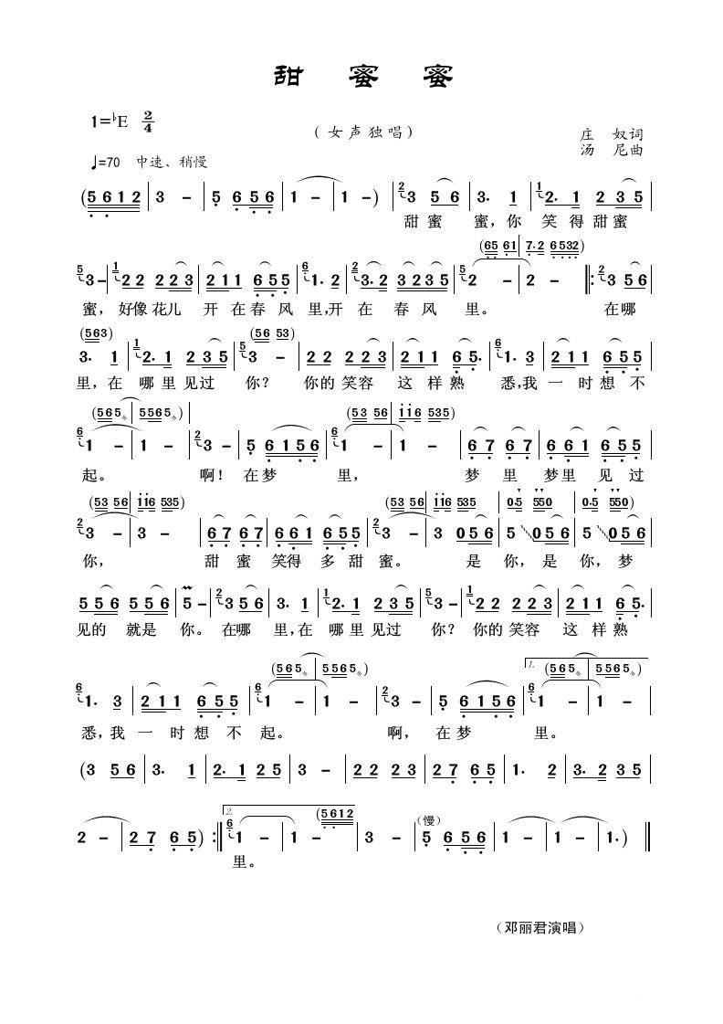 > 甜蜜蜜 女声独唱
