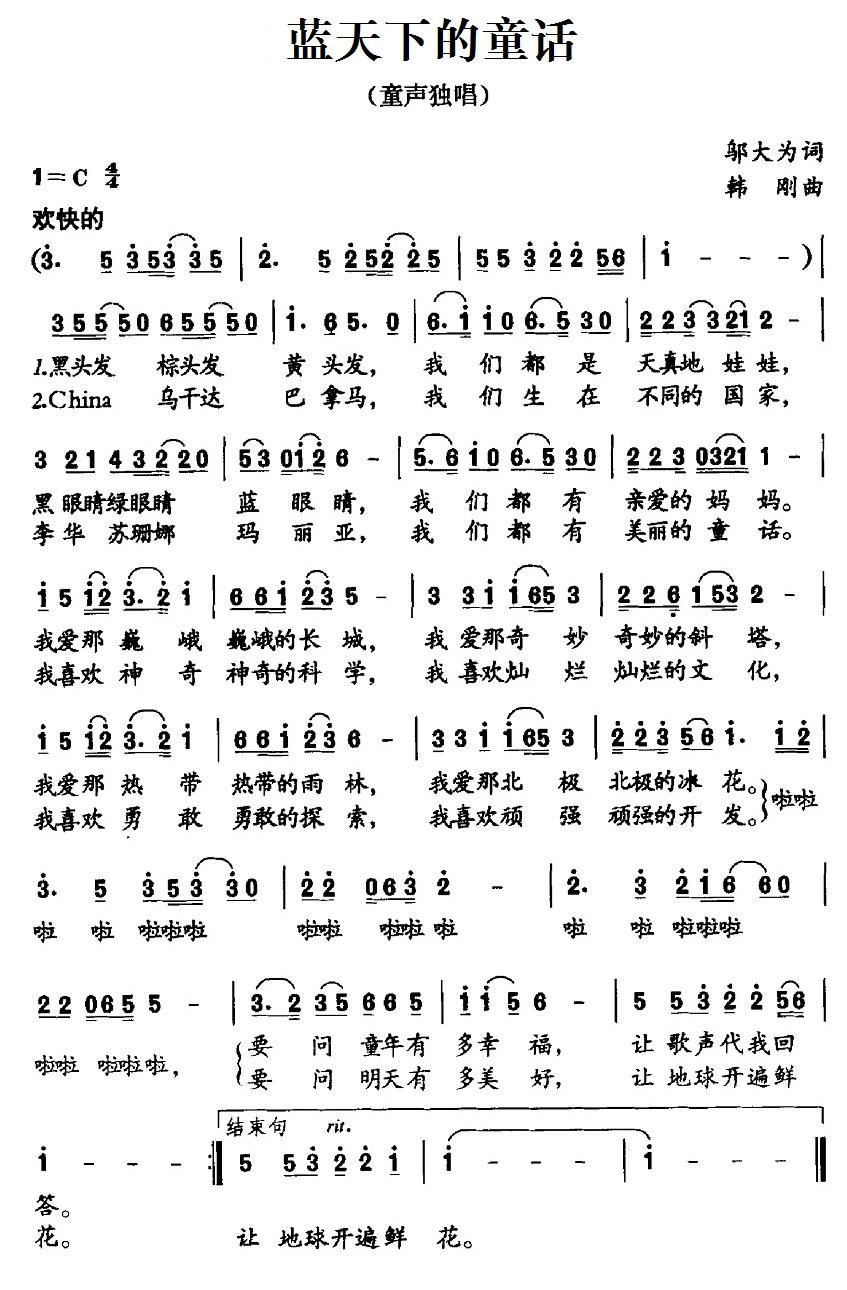 - [歌谱] 祖国的笑声