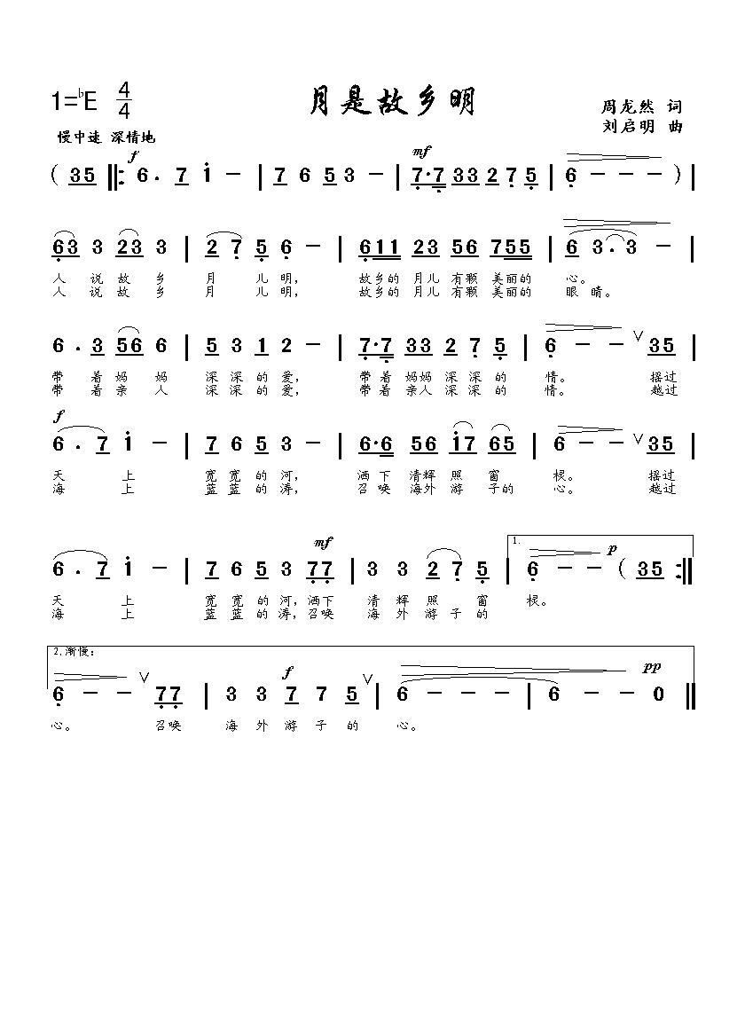 - [歌谱] 月是故乡明