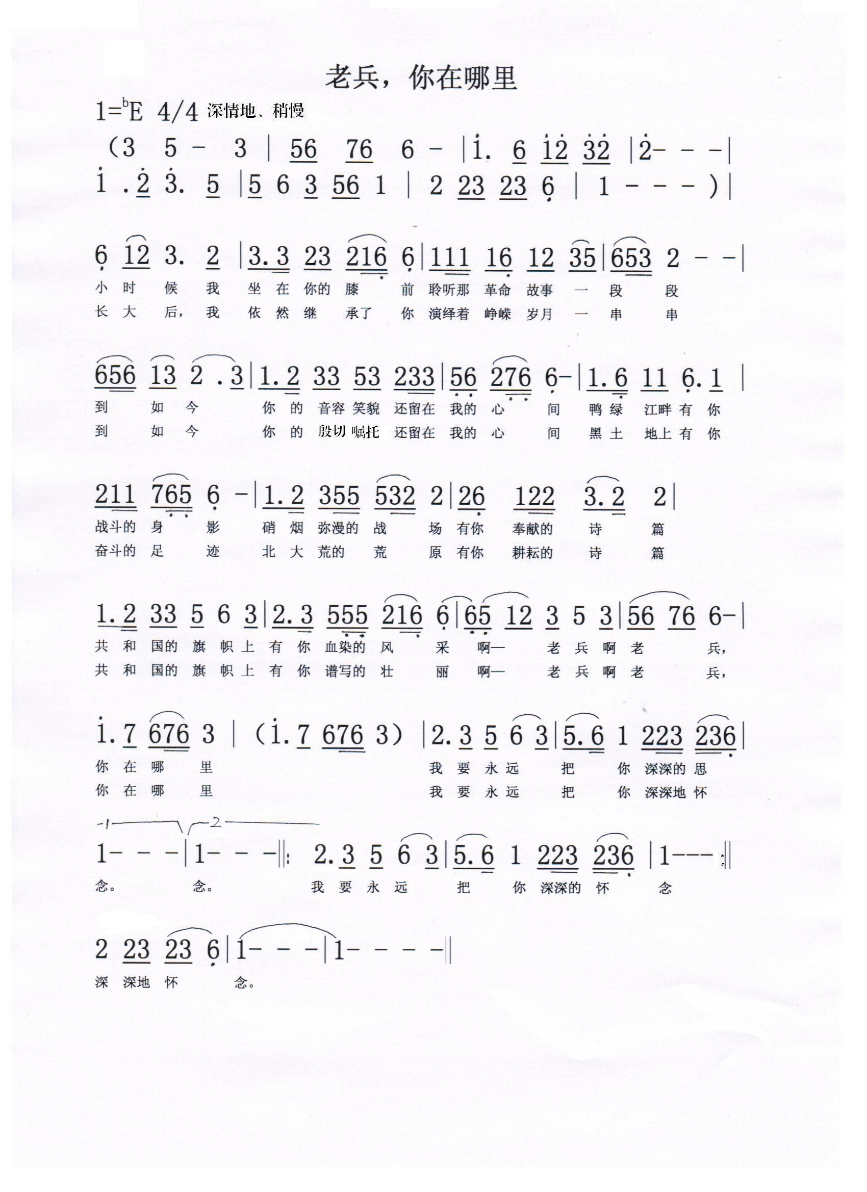 - [歌谱] 你在哪里