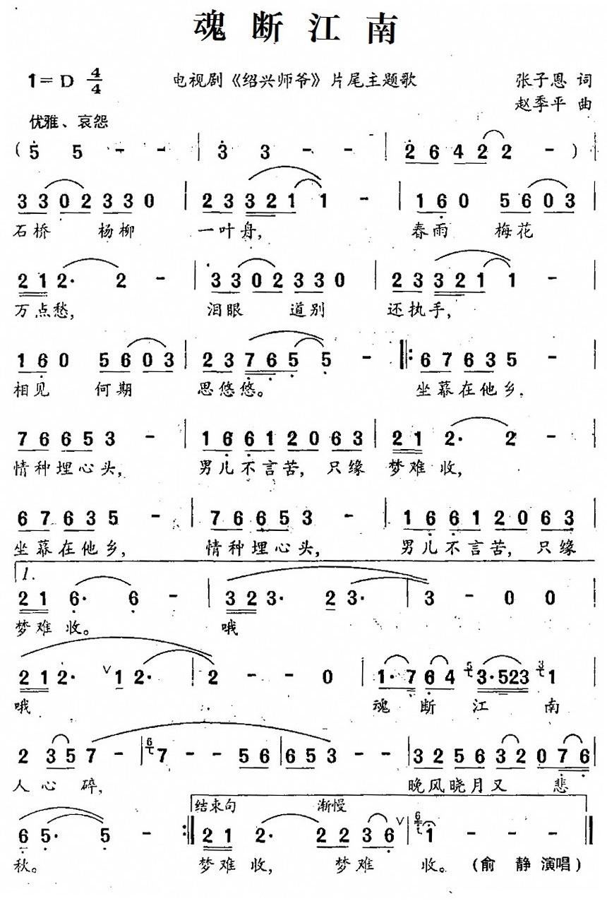 > 魂断江南 电视剧 绍兴师爷 片尾主题歌