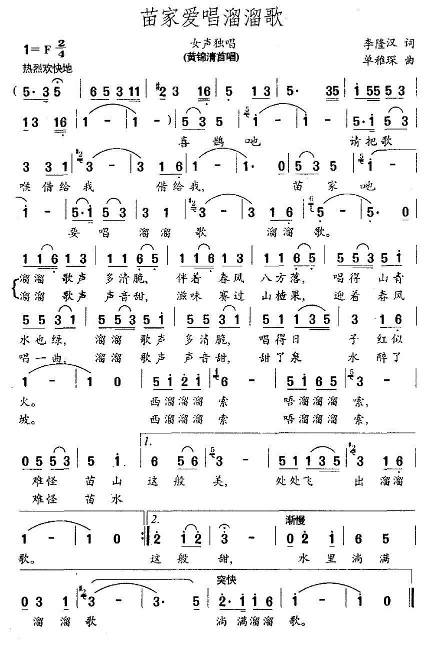 - [歌谱] 唱来百灵做媒人 又名 溜溜歌