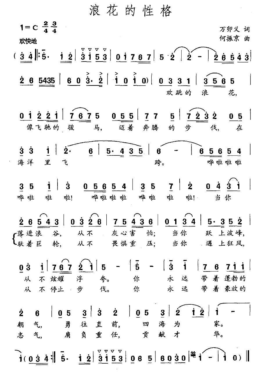 - [歌谱] 浪花的性格
