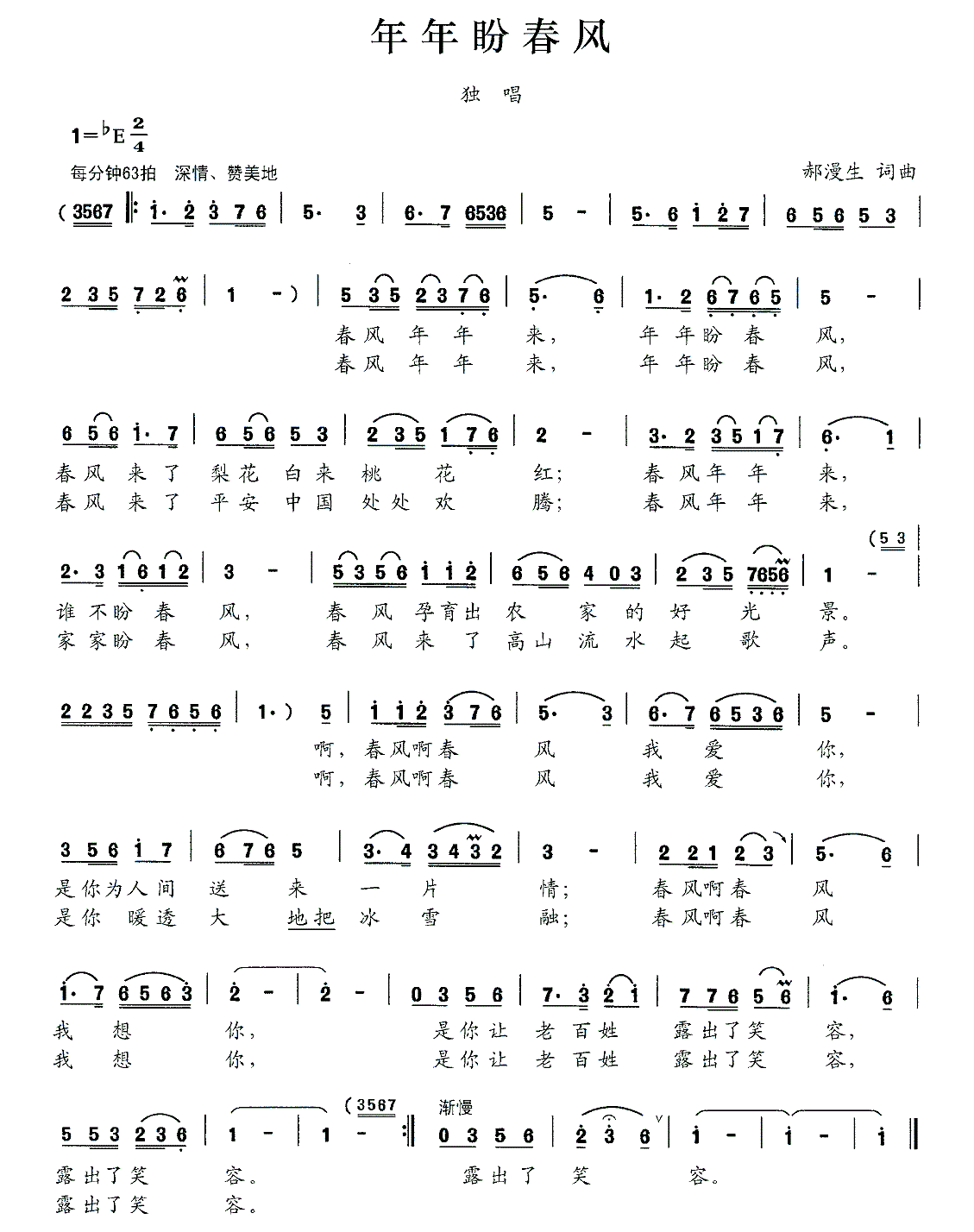 - [歌谱] 年年盼春风