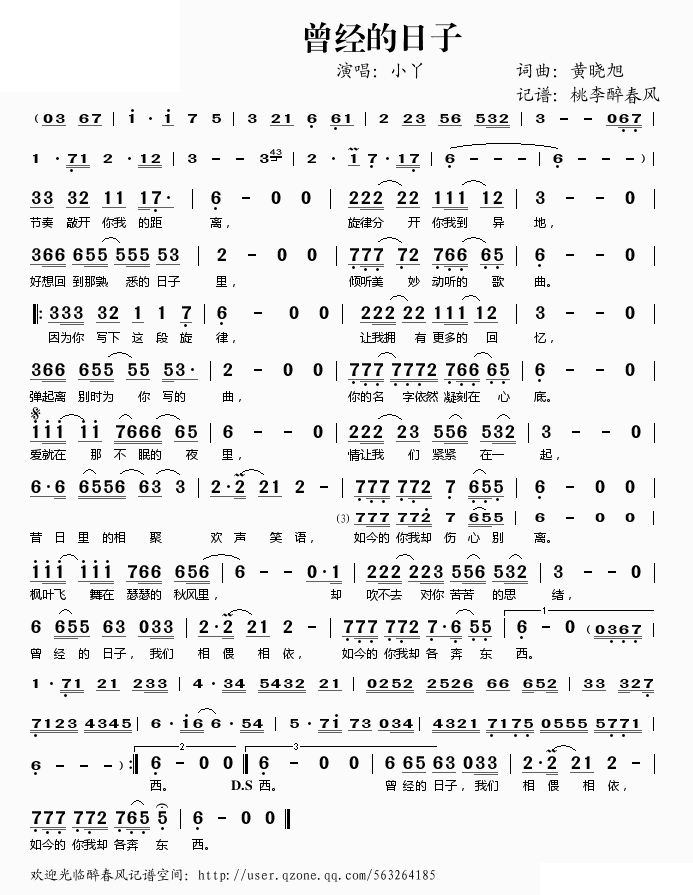 - [歌谱] 曾经的日子