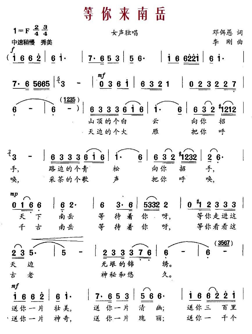 - [歌谱] 我在鲁山等你来