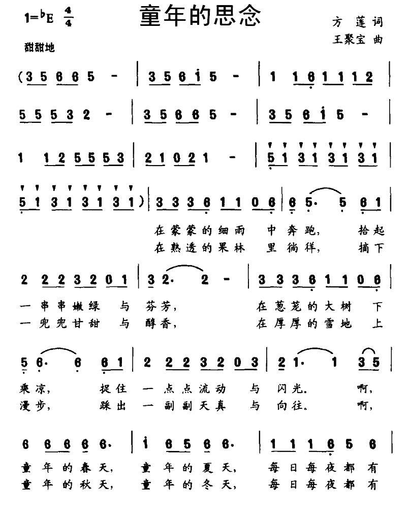 - [歌谱] 童年的思念