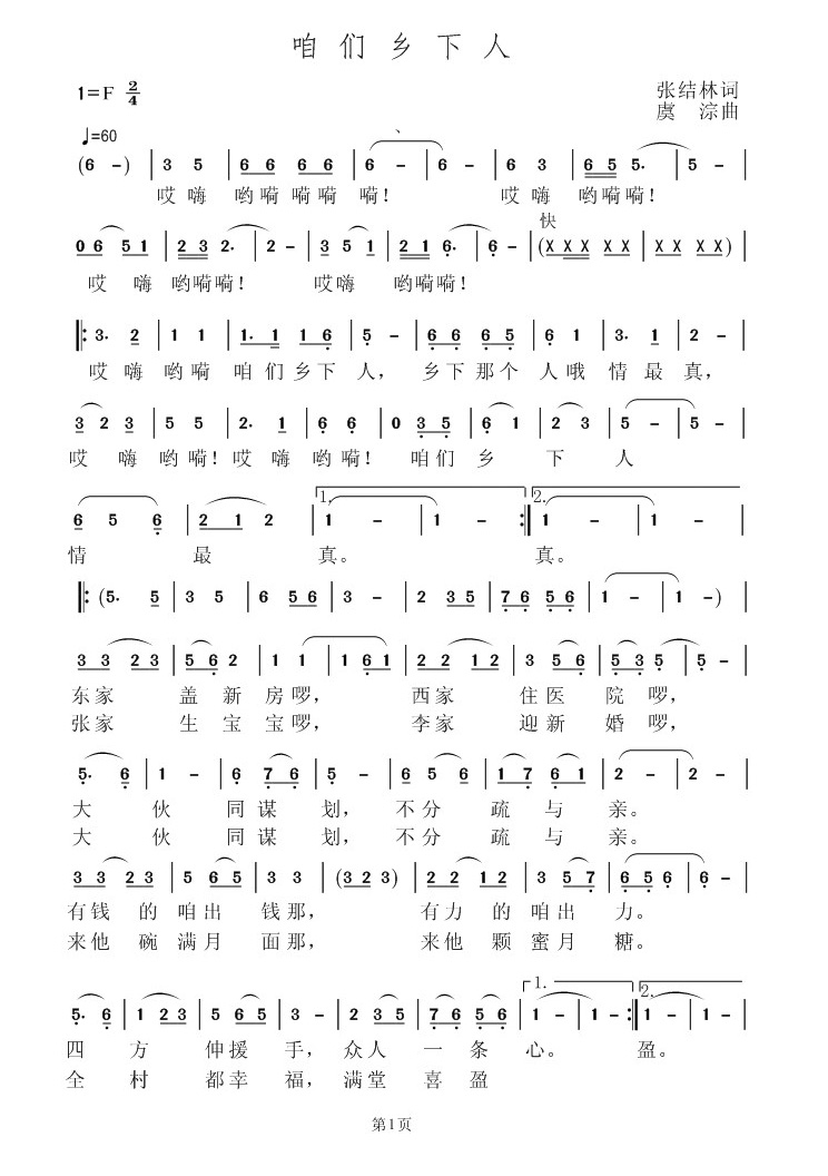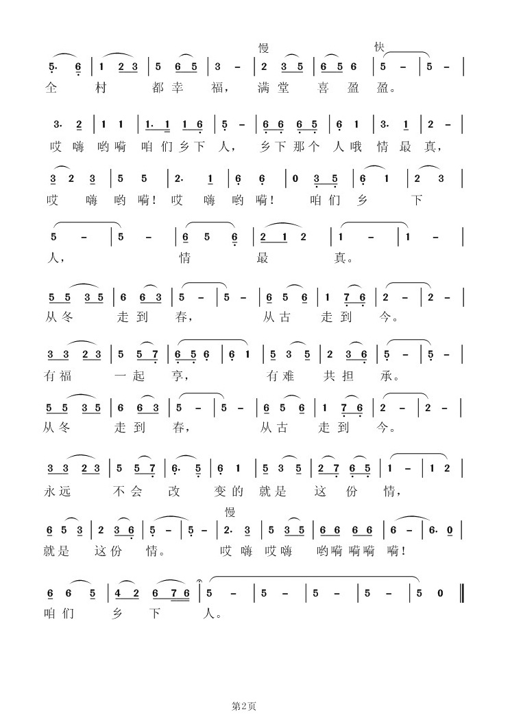 - [歌谱] 乡下人