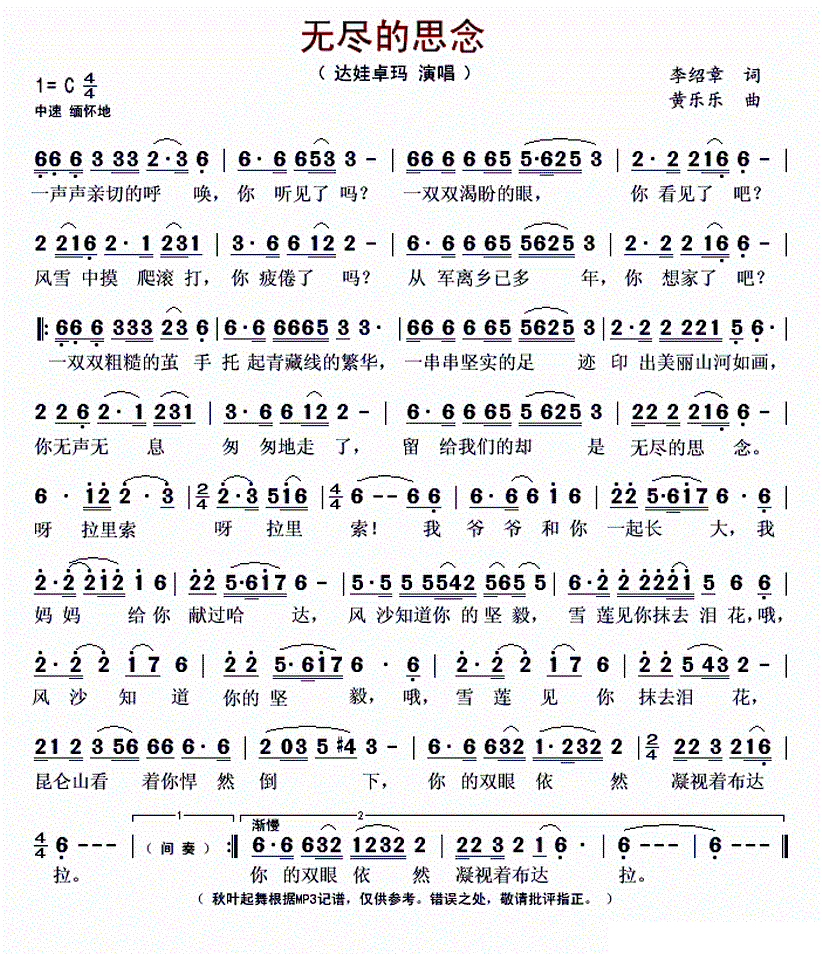 请听蓝桥幽梦演唱 无尽的思念 黄清林编曲