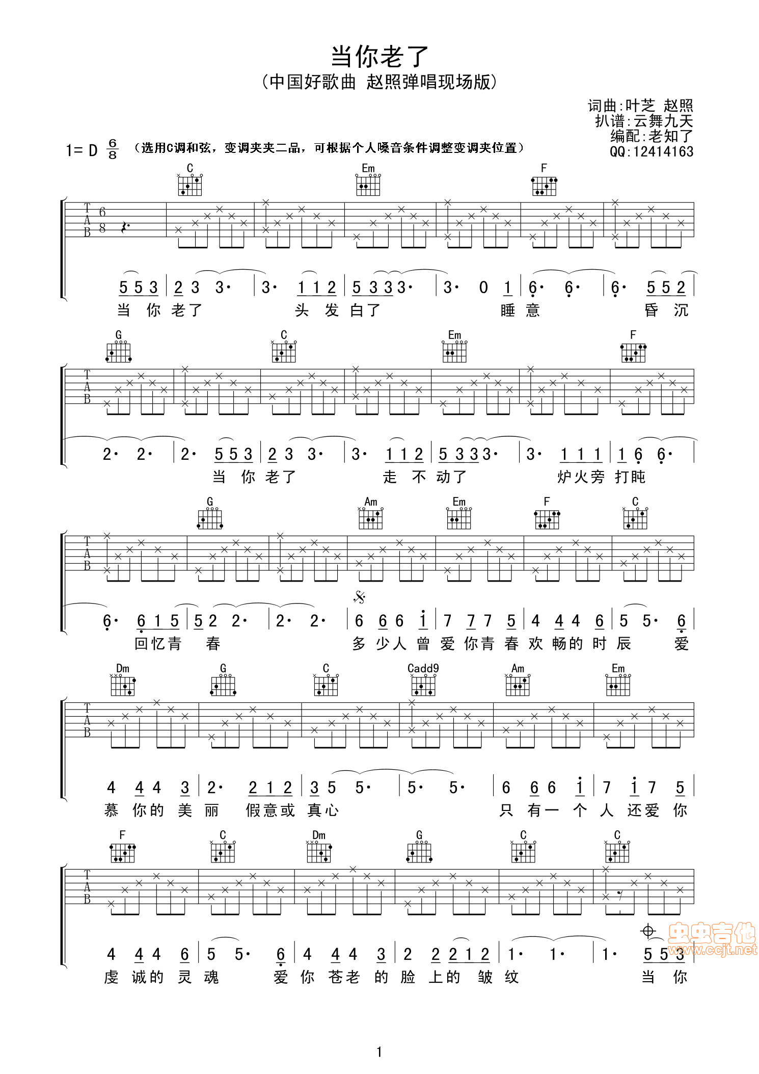 当你老了 老知了谱 中国好歌曲 赵照现场版