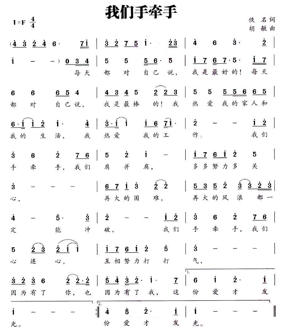 - [歌谱] 我们牵手为幸福加油